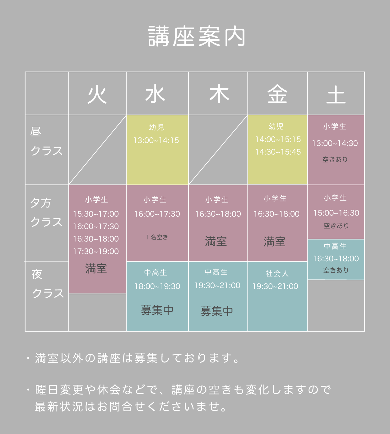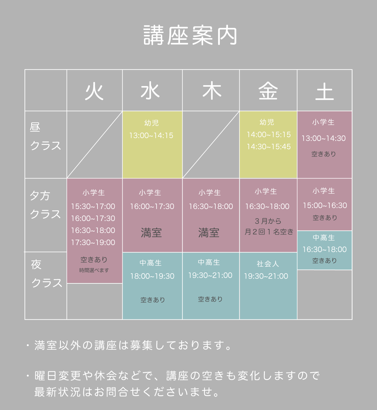 平日小学生空きは水曜、回数は選べます。