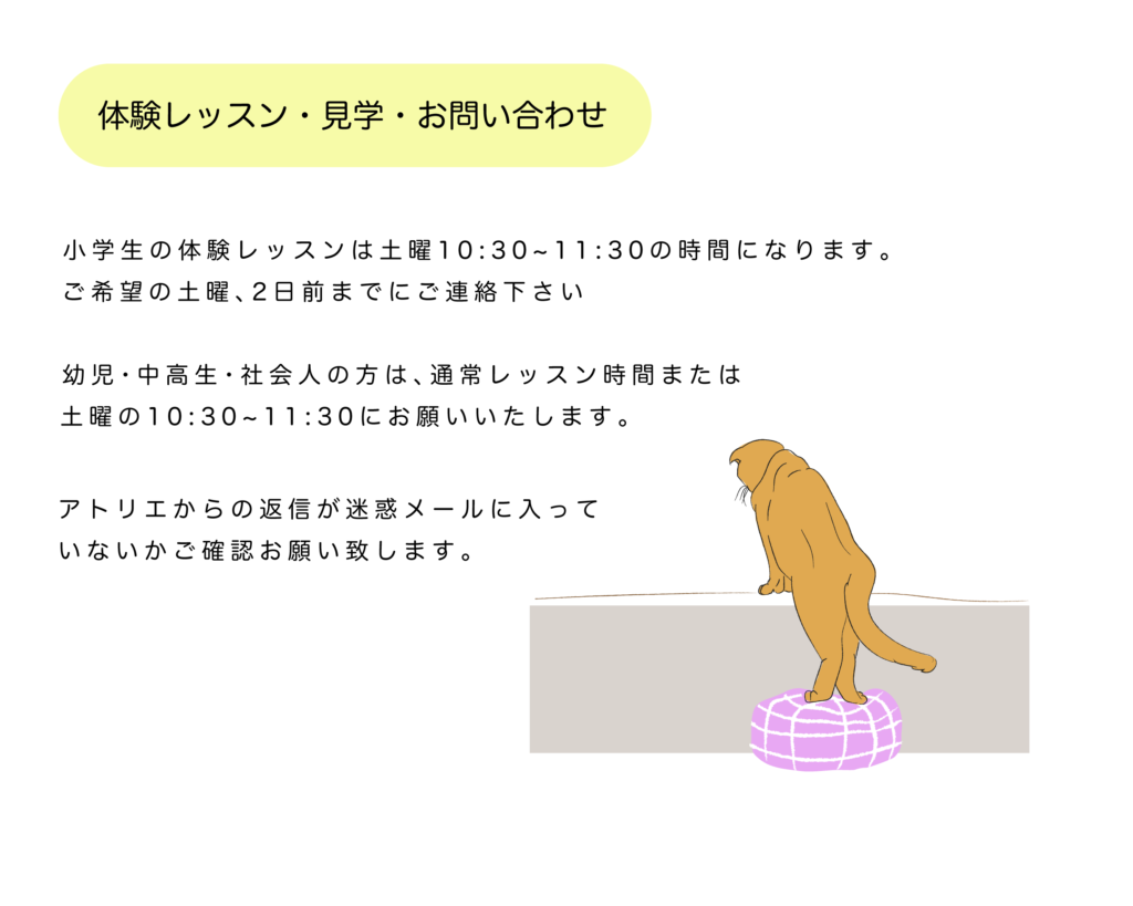 ホーム 体験レッスン・お問い合わせ お名前 メールアドレス お電話番号 ご希望クラス—以下から選択してください—幼児クラス体験・見学小学生クラス体験・見学大人午前クラス体験・見学大人夜クラス体験・見学 ご希望の日時 第3希望までご記入お願いいたします お問い合わせ内容 Δ