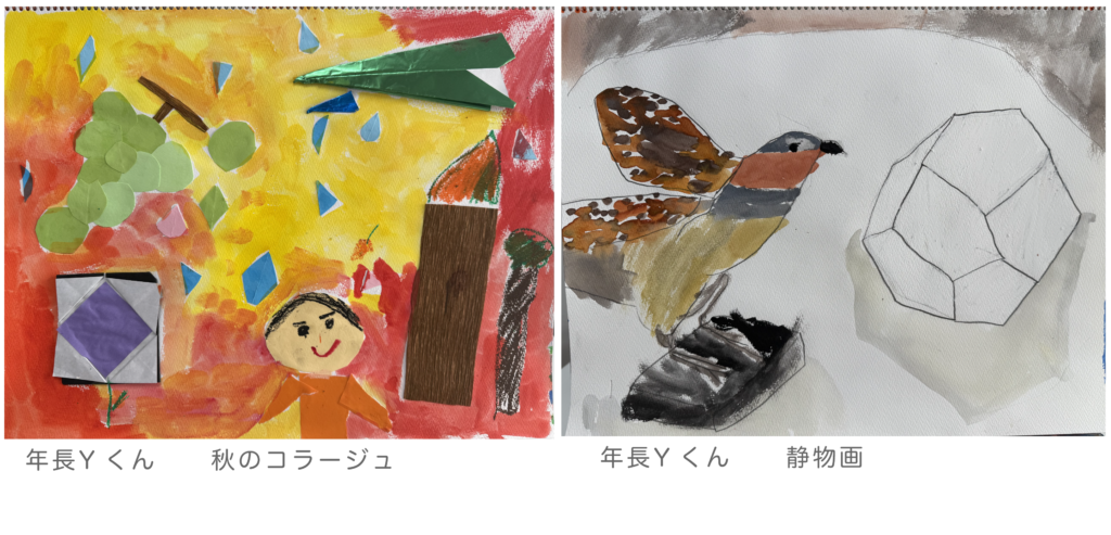 Yくんの作品達♪ 美味しい秋の味覚や色、匂いを表現♪秋雨も素敵ですね!紙飛行機も添えて〜♪