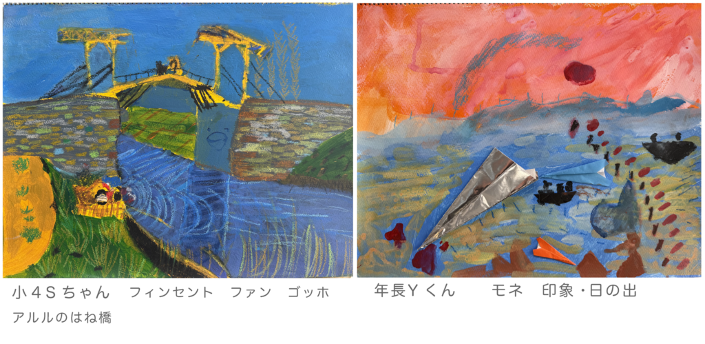 Yくん♪モネの印象に紙飛行機を入れて♪画面に上手にまとまっていますw模写も楽しんでもらえ嬉しいです!!