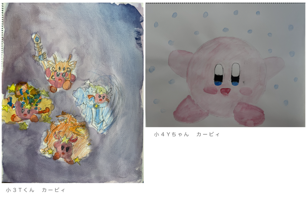 Tくん♪いろんなカービィを模写!カービィへの熱量を感じます!!細かい部分は水彩色鉛筆で頑張りました!